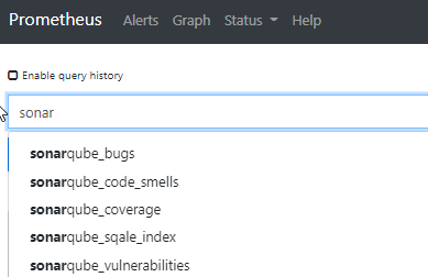 - enter the text “sonar” in search box which returns Prometheus Gauge Metrics as below
