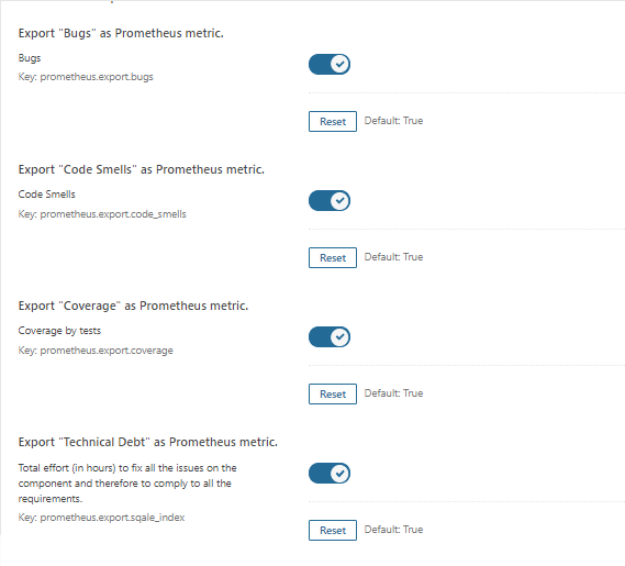 - Open Sonar ->Administration->Prometheus Exporter displayed